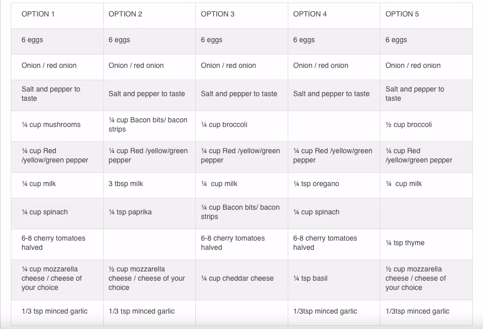 - Bake for 15 – 20 minutes for options without bacon. For options with bacon bake for 20 – 35 minutes.